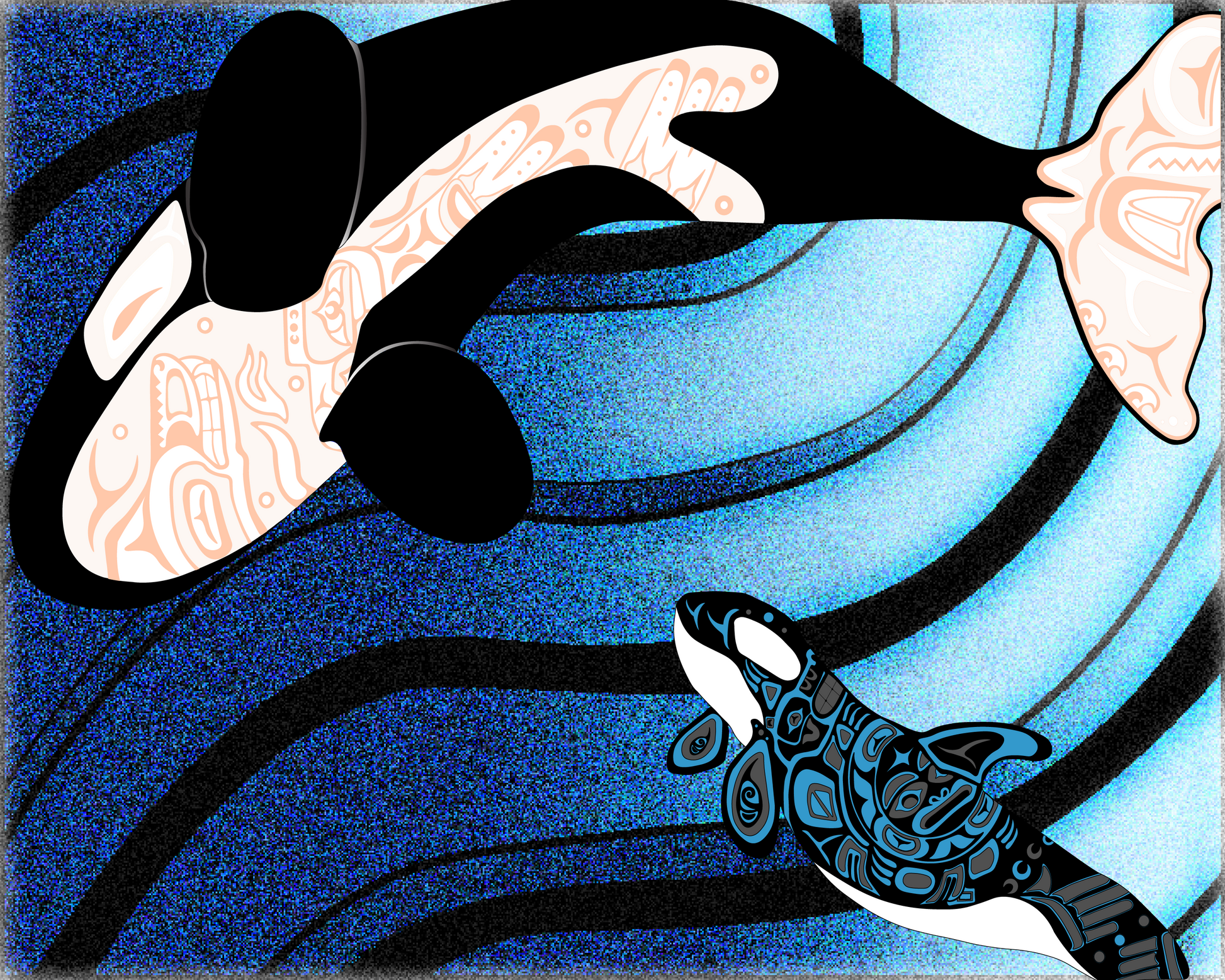 With shared Salish patterns symbolizing the traits passed down through generations, this artwork celebrates family connection and the enduring strength that can be found in these natural relationships.